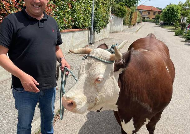 L’animale non era nuovo a queste “fughe” e subito sono stati allertate le forze dell’ordine e i proprietari dell’animale. Sul posto è intervenuto anche il sindaco Colombo (nella foto con l’animale appena recuperato). La “gita” della mucca è durata meno di un’ora, dopo essere stata “accalappiata” è stata affidata alle cure dei suoi proprietari.