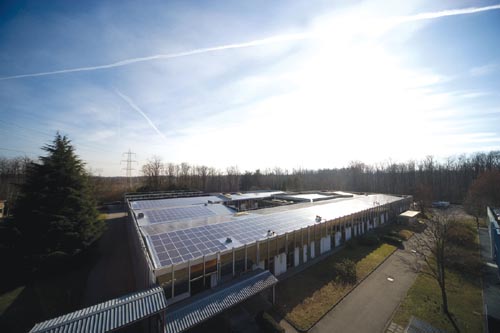 L’impianto è composto da 1.388 moduli al silicio policristallino, i pannelli fotovoltaici, da 225 W, integrati nel tetto, permettono la trasformazione dell’energia solare in energia elettrica consentendo quindi di produrre energia senza alcuna emissione di sostanze inquinanti e risparmiando in TEP (Tonnellate di Petrolio Equivalente) fino a 75 t/anno e 210 t/anno di CO2 (anidride carbonica).