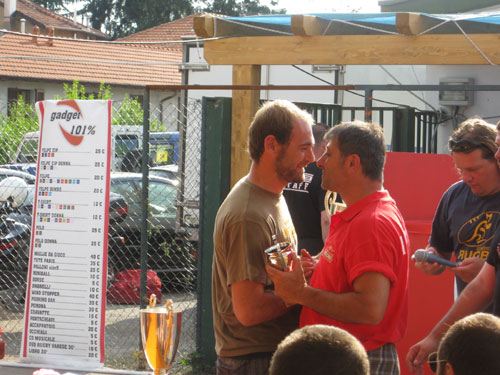 Intanto i tecnici confermano la rosa che domenica ha vinto in casa: ancora assente infatti Andrea Ermolli, l’Mvp della stagione biancorossa (nella foto al momento della premiazione), costretto a tenere il braccio al collo da una lussazione alla clavicola rimediata a Settimo Torinese.