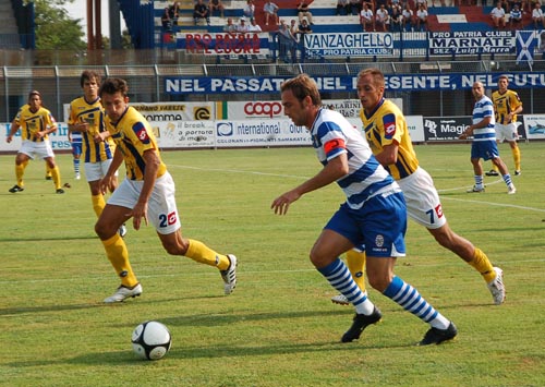 Pro Patria: Caglioni, Masiero (Serafini dal 40′ pt), Som (Rudi dal 40′ st), Bruccini, Maraucci, Polverini, Melara, Aquilanti, Ripa, Sarno, Pacilli. All. Beppe Manari.
