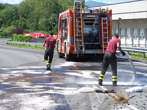 Troppo pericoloso il gasolio sull’asfalto dopo il ribaltamento del camion. Domani il punto della situazione da parte della provincia per decidere il da farsi