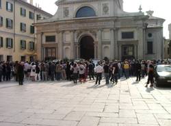dell’oratorio, i due amici che sono scappati dall’auto prima che venisse travolta in quella maledetta serata di lunedì, quasi impietriti, insieme a tutti gli altri, ma con il marchio speciale di chi per fortuna ce l’ha fatta a uscire dall’abitacolo della morte.La messa è stata celebrata da Monsignor Stucchi, coadiuvato da un gruppo di sacerdoti. Prima dell’omelia è stato letto il vangelo secondo Giovanni, un passaggio sulla resurrezione (6, 37-40). In chiesa non volava una mosca. Nelle panche centrali, in prima fila le famiglie Dal Fior e Vilardi, a destra dell’altare la famiglia Minonzio. A sinistra le autorità, e sempre ai lati dell’altare moltissimi giovani dell’oratorio, e via a scorrere tutti gli altri, con la piazza gremita di gente e con una rappresentanza di giornalisti del Corriere della Sera, colleghi del caporedattore Marco Dal Fior, il papà di Paolo.