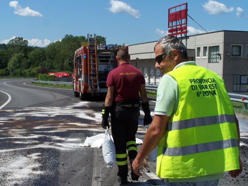 Il gasolio rischiava di mangiarsi il bitume della provinciale 1, la strada oggetto dell’incidente stradale di iri, quando 35 tonnellate di carbone si sono riversate sul manto stradale. In un primo momento si pensava che la chiusura del tratto fra la rotatoria di Gemonio e il prosieguo per Cittiglio fosse dipesa dalla pulizia del fondo stradale e dalla rimozione dell’ingombrante carico. In realtà è il gasolio fuoriuscito dal ribaltamento del pesante mezzo preoccupare i tecnici della Provincia, già ieri sul posto per le verifiche.