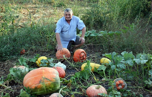 Come sempre quando inizia la stagione autunnale si avvia anche la raccolta delle zucche e un veterano come Rinaldo Menin ogni anno stupisce con qualche esemplare formidabile di zucca che si evidenzia o per grandezza o per forma originale o per una rara varietà. anche stavolta infatti nel raccolto di qualche quintale di zucche si sono mantenute le premesse. Grandi e piccole, lisce e frastagliate, lunghe e corte, pallide o coloratissime, ogni forma e colore vengono rappresentate sui tavoli e collocate nella cassette pronte per esser messe in mostra in qualche sagra anche al di fuori dei confini provinciali. Una bellissima zucca di oltre 60 kg al momento sembra la più grossa e accattivante ma siamo solo a metà raccolto.. Una gran bella soddisfazione per tutto il tempo, fatica e sacrifici che il lavorare la terra comporta.