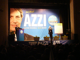 Inizio di campagna in grande stile per Rienzo Azzi, uno dei big del PdL in provincia di Varese. Centinaia di militanti e amministratori del PdL si sono concentrati in un Teatro del Popolo pieno all’inverosimile: in prima fila c’erano i vertici del partito, o meglio gli esponenti di spicco dell’area laica del partito. Folta la pattuglia dei sindaci, guidati dal primo cittadino gallaratese Nicola Mucci e dal bustocco Gigi Farioli; accanto a loro, l’europarlamentare Lara Comi, gli assessori provinciali Luca Marsico e Aldo Simeoni, il massaggiatore personale di Silvio Berlusconi e candidato Giorgio Puricelli, il presidente del consiglio provinciale Luca Macchi. E soprattutto sul palcoscenico c’era Nino Caianiello, il vero alfiere dell’area laica del partito. Caianiello ha colto l’occasione per rimarcare la solidità dei rapporti all’interno della componente: «Il sodalizio tra me