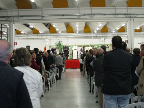 "Veglia per il lavoro" presso la ditta Cavelli in zona industriale, presenti vicario episcopale, prevosto, parroci, e oltre duecento persone, per implorare la fine della crisi e ritrovare insieme le ragioni della speranza