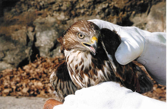 Il povero volatile, ferito ad un occhio, non era più stato in grado di cacciare e pertanto stava morendo esausto.