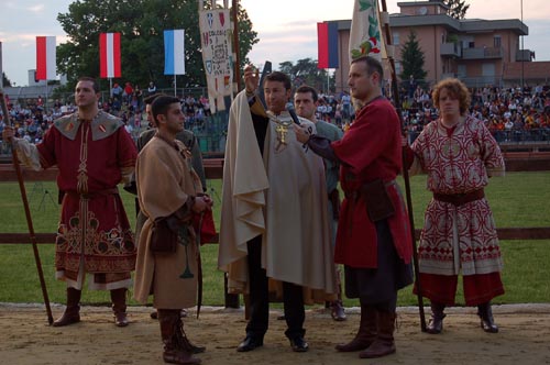 Domenica nel centro storico di Abbiate Guazzone sarà la volta della rievocazione storica della visita del podestà di Como. Il tutto con un fitto programma, tra tende, cavalieri in costume, sbandieratori, arcieri, prove di tiro e sfilata. «Sarà rappresentato quando l’imperatore Federico I di Svevia, detto il Barbarossa, proveniente da Como a capo di duemila cavalieri, sostà ad Habiate Guazoni per rifocillarsi, per poi proseguire attraversando Lonate Ceppino e Cairate – prosegue Marinello -. Vorremmo rievocare questo evento di grande importanza storica che ha coinvolto il territorio tradatese e i comuni limitrofi. L’iniziativa, la prima di questo tipo nel nostro territorio, si può legare alla recente pubblicazione del film di Renzo Martinelli “Il Barbarossa”. La rievocazione storica che vorremmo proporre consiste nell’allestire un accampamento composto di tende esagonali, velario e fuochi per il cibo, armamenti da fanteria e armi da cavalieri, macchine da guerra tipo onagro e trabucco a contrappeso fisso, giochi per bambini».
