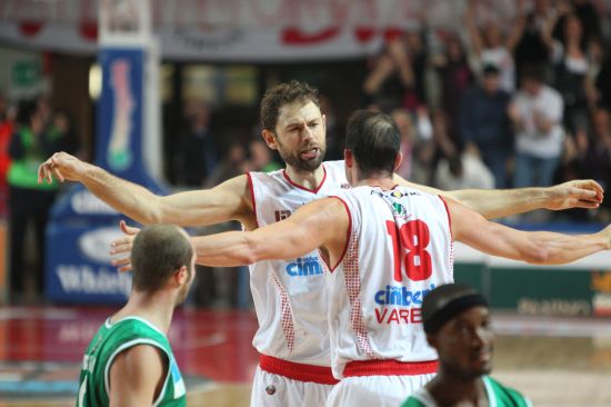 Varese: 4 Demartini, 5 Goss, 6 Mian, 7 Rannikko, 9 Righetti, 10 Galanda, 13 Ryan, 14 Kangur, 15 Lenotti, 18 Fajardo, 20 Stipcevic, 35 Slay. All. Recalcati.