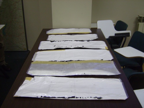 Immediato l’appostamento dei carabinieri che, secondo le informazioni ricevute, hanno atteso l’arrivo di un uomo, con in mano una busta bianca, subito bloccato e trovato in possesso di circa 7.000 euro, che secondo le indagini sarebbero serviti all’acquisto di parte dello stupefacente. Nel bagagliaio dell’autovettura dell’uomo, uno sloveno 28enne, sono stati trovati 3 trolley vuoti, che sarebbero stati scambiati con quelli contenenti lo stupefacente. Infatti, fatta irruzione nella camera della coppia, sono stati perquisiti i trolley, dove sono stati recuperati 6 involucri contenenti complessivamente 2,5 kg di cocaina, pressata sottovuoto. Gli involucri sembrano infatti delle lastre utilizzate come ”pareti “rigide dei bagagli, insensibili anche all’olfatto, essendo sottovuoto.