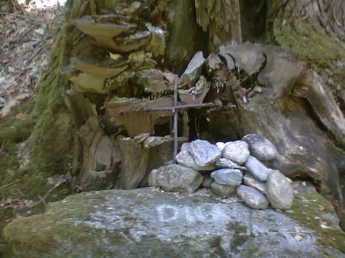 Un nostro lettore ci invia un'immagine abbastanza inquietante scattata nei boschi di Mezzana. Riti satanici o uno scherzo di cattivo gusto?