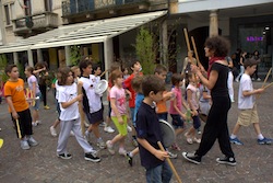 Nella mattinata di sabato, nel centro storico, i piccoli allievi del laboratorio -condotto da Sara Mignolli e Gabrio Monza della Scuola del Teatro del Popolo- hanno sfilato in parata a suon di bastoni, trombette, piatti e fischietti suggerendo l’atmosfera sognante del viaggio. L’esplorazione in un mare di creature fantastiche, un universo a parte in cui le parole hanno la capacità di inventare nuove storie: quelle ascoltate e imparate poi in serata, al Teatro del Popolo, in ImmaginAzione, il saggio – che ha preso spunto dalla Grammatica della Fantasia di Gianni Rodari- e che, dopo una settimana di lavoro da parte dei due operatori in collaborazione con due allieve dell’Accademia