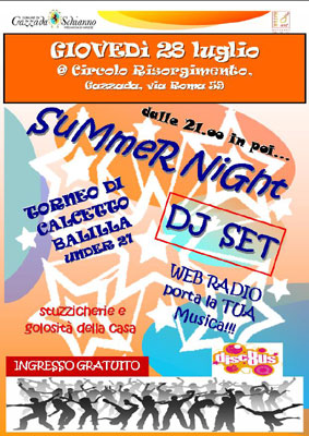 Giovedì 28 luglio dalle ore 21, presso il Circolo di Gazzada in via Roma, si terrà l'evento "Summer Night"