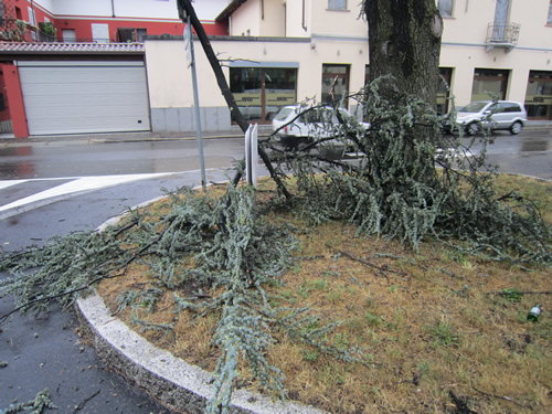 Un quarto d'ora di precipitazioni intensissime su Busto: alberi caduti a decine soprattutto nella zona di via Togliatti e del cimitero. Scoperchiati tetti di case e aziende. L'acquazzone ha colpito anche Gallarate