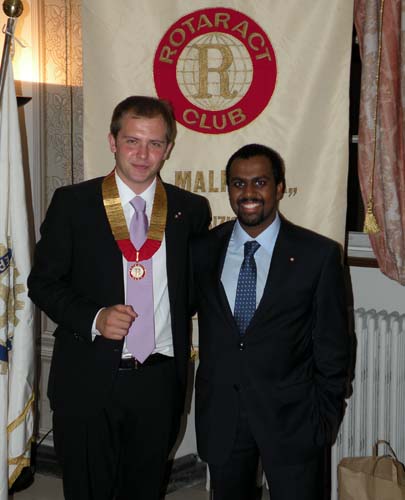 È Mattia Mescieri (a sin. nella foto), classe 1987, legnanese, studente di Giurisprudenza, il presidente del Rotaract club "La Malpensa" per l’anno 2011-2012. Il passaggio delle consegne è avvenuto venerdì 8 luglio al ristorante "La Madonnina" di Cantello, alla presenza di numerose autorità rotariane e rotaractiane. Mescieri ha raccolto il testimone da Saverio Zei, alla guida del club nel 2010-2011. Quest’ultimo, dopo aver illustrato agli astanti i numerosi progetti portati avanti nel corso dell’anno (dai service in favore dei ragazzi disabili e dei senzatetto alle raccolte fondi, dagli eventi culturali ai concerti), ha passato il collare su cui sono incisi i nomi di tutti i presidenti del club, per metterlo al collo del nuovo numero uno.