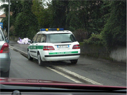 Un lettore di Gallarate, multato qualche mese fa, immortala un parcheggio vietato della macchina della Polizia Locale: "È giusto che pèaghino tutti allo stesso modo"