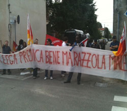 In contemporanea sono arrivati anche i manifestanti del Movimento Antileghista (quelli della festa di Brenta) e della Uisp: una trentina di persone armati di numerosi striscioni e sfottò per i leghisti. A