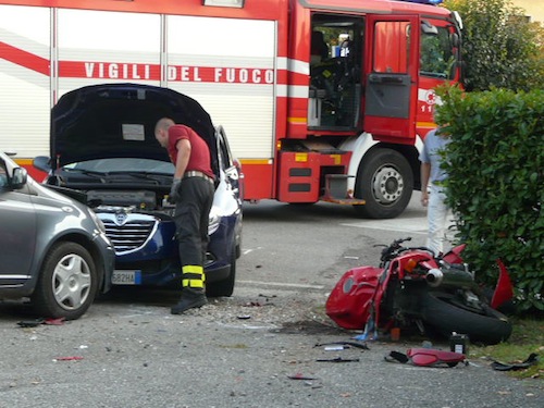 Dalle prime ricostruzioni, sembra che la moto (una Suzuki) fosse in sorpasso e abbia colpito in pieno l’auto