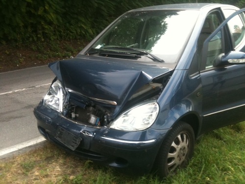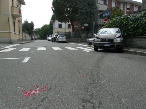 un Suv, danneggiando pesantemente il frontale della sua automobile. A questo punto l’anziano ha ingranato la retromarcia e ha percorso al contrario via Tenca, ha urtato una Fiat Punto (nella foto a destra), è sbucato su via Checchi in velocità e dopo aver sterzato si è fermato nel leggero avvallamento sul lato della strada, che ha fermato la sua corsa. Sull’asfalto – anche in via Checci – è rimasta la scia dell’olio perso dal veicolo nella corsa a marcia indietro. «Una scena incredibile, chissà cosa aveva in testa. Pensare che qui c’è l’asilo, si è corso un gran rischio» dice un residente della zona, che era sul posto insieme al nipote di pochi anni. L’uomo, in stato di choc, ha spiegato di aver avuto un malore. La dinamica dei fatti sarà ricostruita con esattezza dalla Polizia Locale, intervenuta sul posto insieme ad ambulanza e automedica del 118.