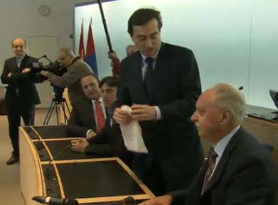 Il sorteggio è durato pochi minuti: il tempo di inserire due scatolette identiche con i due nomi in un sacchetto e di estratte la scatoletta che ha poi rivelato il nome di Romano. A "scegliere" la scatoletta è stato Marco Borradori.
