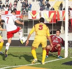 Partita decisa da un episodio a ripresa inoltrata: punizione-fucilata di Schiavon che Bressan non controlla, non vede, non trattiene (foto S. Raso) e insomma, fa la frittata. Da lì in avanti, era il 69’, i biancorossi avrebbero anche avuto il tempo di rimettersi in carreggiata ma a quel punto la confusione ha preso il sopravvento e il fortino del Cittadella, ancora “fatale” è riuscito a reggere. Quello del Varese è un brutto stop: appena si è tornati a parlare di “zone alte” della classifica, il campo ha detto un’altra cosa; tra i biancorossi tra l’altro sono stati in tanti a non ingranare nel modo giusto. Da Grillo, uscito per infortunio sullo 0-0, alla coppia centrale Corti-Kurtic, da Zecchin a Cellini. E curiosamente Maran, per giocarsi il tutto per tutto, ha tolto Carrozza che era l’unico a impegnare la difesa con una certa continuità. Il ko complica la vita al Varese che ora dovrà affrontare l’insidiosa trasferta in casa della Nocerina (oggi acciuffata sul 2-2 dal Vicenza in extremis) per poi ospitare a Masnago un Brescia alla perenne ricerca di se stesso. Squadre che, come oggi il Cittadella, non faranno sconti.