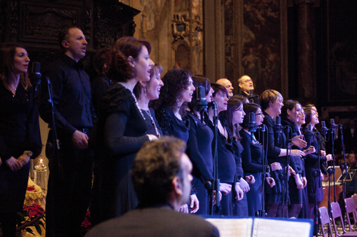 E’ stato quasi un anticipo di Capodanno l’esibizione dei Greensleeves nella basilica di san Vittore: abiti "all black" e qualche vestito lungo per il concerto che ha visto coinvolto oltre al coro gospel diretto dal maestro Fausto Caravati anche l’accademia vocale Solevoci "Blooming kids" e la Chiasso swing orchestra. Basilica gremita e grande successo per questo concerto che "valeva per tre".