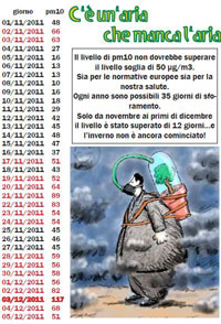 Nel giorno in cui il Pm10 supera nuovamente la soglia massima dei 50 microgrammi per metro cubo, arrivando a 57, Legambiente rilancia la battaglia contro l’inquinamento dell’aria.