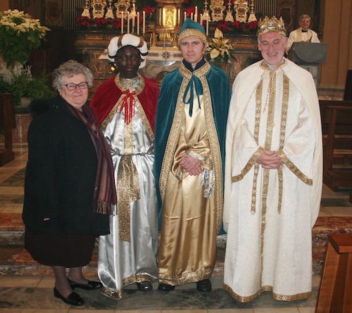 Il corteo dei Re Magi organizzato dalla Pro Loco, è partito dal castello visconteo ed è giunto nella parrocchiale dove sono stati accolti ed introdotti in chiesa dal Parroco Don Reginaldo Morlacchi che ha officiato l’omelia affiancato da Don Giovanni Annovazzi.