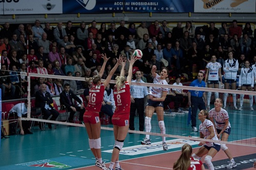 LA PARTITA – PalaYamamay già strapieno a un’ora dall’inizio della partita, con lunghe code fuori dall’impianto per accaparrarsi gli ultimi biglietti disponibili. Non tutti ce la fanno: diverse centinaia di persone restano fuori. L’Asystel, già in formazione rimaneggiatissima (ben 4 giocatrici in tribuna…), lascia fuori all’inizio anche Veljkovic per affidarsi alla coppia di centrali Frigo-Folie; sestetto-tipo per Carlo Parisi.