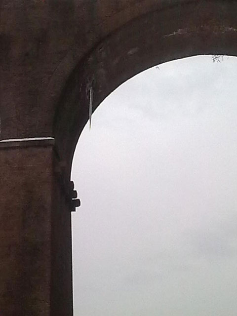 Una grossa e pericolosa stalattite di ghiaccio sul viadotto Olona (a Induno Olona). È visibile proprio sotto il ponte all’altezza dell’intersezione con il ponte ferroviario: pende dalla volta proprio sopra la carreggiata del viadotto.TAG ARTICOLO