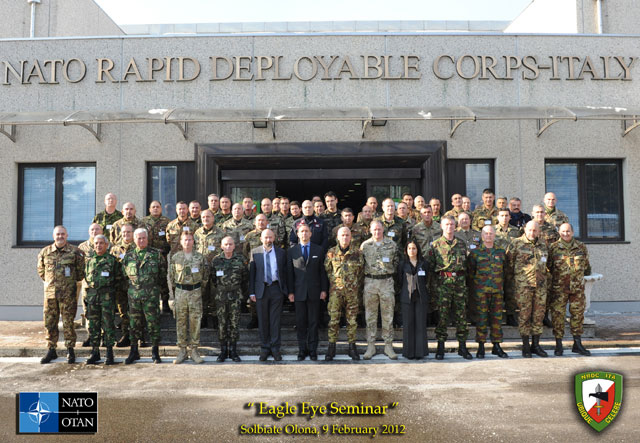 Si è concluso oggi il seminario di studi geo-strategici denominato “Eagle Eye 2012” presso la caserma “Ugo Mara” di Solbiate Olona, sede del Corpo d’Armata di Reazione Rapida della NATO in Italia e comandato dal Generale di Corpo d’Armata Giorgio Battisti.