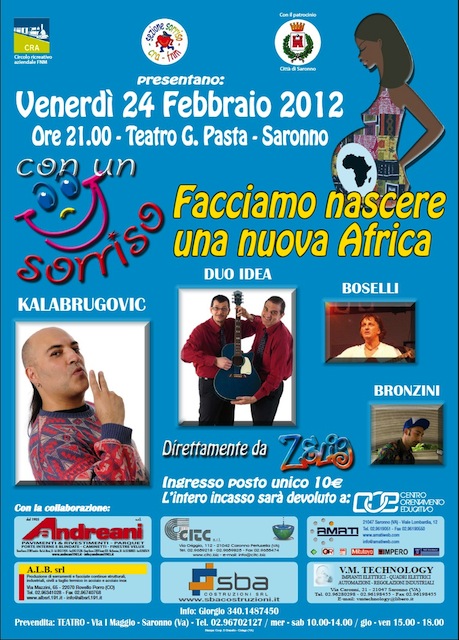 Alla serata prenderanno parte molti comici di Zelig, come Kalabrugovich, Il Duo Idea, Boselli e Bronzini. L’incasso andrà interamente in beneficenza al COE (Centro Orientamento Educativo) per la costruzione di un ospedale in Camerun.