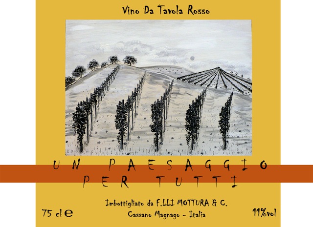 La vera sorpresa però, che dimostra l’impegno della cooperativa e dei suoi artisti di volersi sempre rivolgere all’esterno con i propri laboratori per far riconoscere il proprio lavoro dando cosi dignità alle persone, è la collaborazione con la cantina dei Fratelli Mottura&Co. di Cassano Magnago (www.fratellimottura.com) per la “creazione” di un vino solidale. L’etichetta di questo rosso da tavola è tratta da un’ opera degli artisti, appartenente all’atelier “Un paesaggio per tutti” e la bottiglia porta l’omonimo nome.