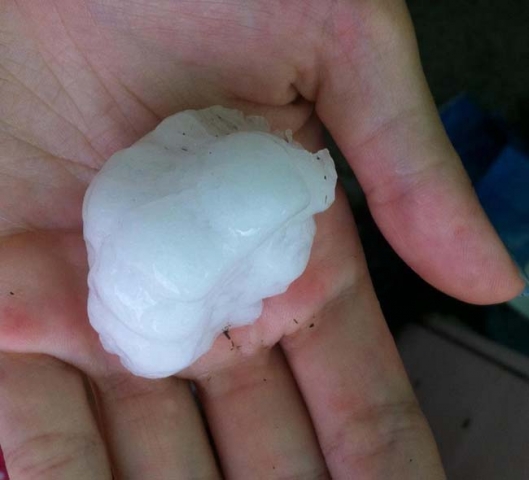 Vento, pioggia forte e chicchi di grandine grossi come noci (nella foto un chicco di grandine raccolto da una nostra lettrice a Somma Lombardo, Elena Stella). E’ durato poco ma ha causato qualche danno il temporale che ha colpito il sud della provincia intorno alle 18 di questa sera, sabato 23 giugno.