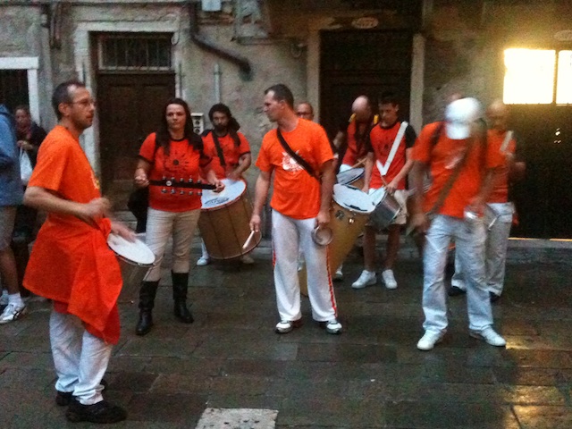 Fuori dal teatro una banda di percussionisti per una street parade che ci porta in giro per la città. Di certo non passeremo inosservati.