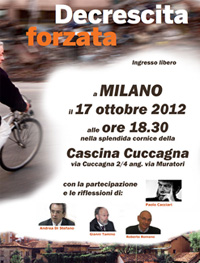Il mensile di finanza ed economia etica "Valori" organizza un dibattito sulla Decrescita. Sull'argomento economisti, scettici e sostenitori animeranno una tavola rotonda mercoledì 17 ottobre (18.30) alla Cascina Cuccagna di Milano