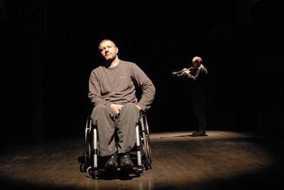Al Teatro Nuovo di Varese una produzione di Rosso Levante, in scena Gianmarco Mereu, autore dei testi, vittima di un infortunio sul lavoro che lo ha costretto sulla sedia a rotelle