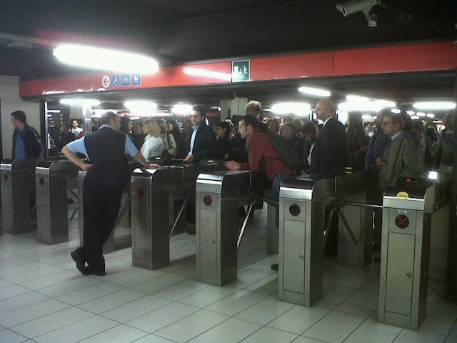 Allo scoccare dell'inizio della seconda fase dello sciopero la metropolitana M1 chiusa con tantissima gente in attesa, nella vana speranza di partire