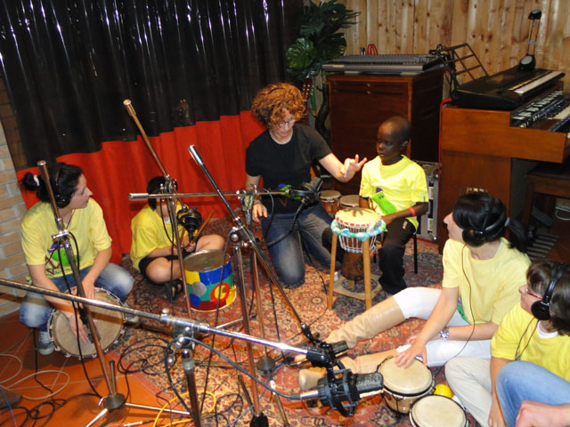 Così nella sala di incisione Pongo di Locate Varesino, i bambini proprio come i gruppi più famosi, hanno inciso le percussioni su brani già esistenti, anche se in uno dei brani c’è anche la voce di una bambina del gruppo. Una band che suona con tutto: scatoloni, bidoni, percussioni vere e altre costruite. Ma i bambini, guidati da Cristina Bulgheroni, soprattutto suonano con il cuore e chi vorrà ascoltarli sicuramente potrà percepire un pochino dell’emozione vissuta da bambini ed educatori.