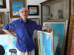 Ironico e tagliente, artista e poeta ha riempito nel corso della vita interi chilometri di fogli di schizzi e massime poetiche. Ha dipinto moltissimo e la sua casa è più che altro uno stipato museo custode dei suoi numerosi quadri e disegni realizzati fin da bambino. È affascinante ascoltarlo nel racconto di una vita, dove citazioni dal passato si intrecciano con considerazioni sul presente, dove mai affiora un sentimento nostalgico ma piuttosto un entusiasta proiezione verso il futuro.