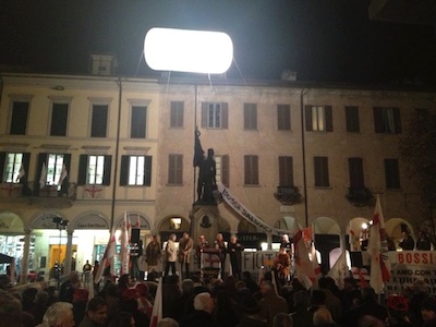 Comizio di Bossi in piazza del Podestà, ma è una fiction
