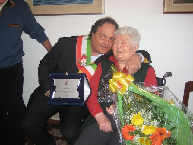 La famiglia ha festeggiato presso l’abitazione della signora Veronica nel quartiere Redentore. Ai festeggiamenti hanno partecipato anche il parroco, il sindaco Gigi Farioli e la Balcon Band che ha suonato per la festeggiata.