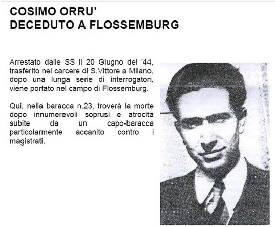 La celebrazione è avvenutà giovedì nell'atrio della Procura di Busto dove campeggia una lapide che lo ricorda. Cosimo Orrù fu arrestato nel '44 e deportato nel campo di Flossenburg dove morì