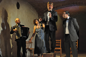 Si comincia venerdì 19 (ore 21 ingresso gratuito) con la lezione conclusiva del ciclo di tre incontri di approfondimento sulla storia dello spettacolo dal vivo del XX secolo. L’iniziativa curata dalla regista Paola Manfredi, con dimostrazioni degli attori di Teatro Periferico e proiezione di materiali vide, ha visto la partecipazione di un numero sempre crescente di uditori di diverse età che venerdì potranno interagire con riflessioni e domande nella parte conclusiva dell’incontro dedicato ai maestri del secondo novecento, il terzo teatro e la transavanguardia. La sera successiva, sabato 20 (ore 21, ingresso 5 euro) vanno in scena gli attori e i musicisti del Teatro degli Acerbi e Faber Teater in arrivo da Asti. Lo spettacolo Paisan vede in scena tre attori e un fisarmonicista (Marco Andorno, Dario Cirelli, Fabio Fassio, Elena Romano) che danno vita a una girandola di personaggi e situazioni ambientate tra alcune bancarelle di un tradizionale mercato piemontese. Questo luogo, magico e variopinto, diventa il pretesto per parlare di “paesanità”, della ricchezza di un paesaggio umano che va tutelato. Il dialetto si sposa con i testi più alti della letteratura italiana (Pavese, Silone, Dante Alighieri, Verga) rendendo la cultura popolare piemontese esportabile, universale e curiosa per qualsiasi tipo di pubblico. Lo spettacolo scritto e diretto da Fabio Fassio, Giuseppe Morrone e Aldo Pasquero nasce da un progetto per il supporto della candidatura a Patrimonio dell’Umanità dei paesaggi vitivinicoli di Langhe-Roero e Monferrato.