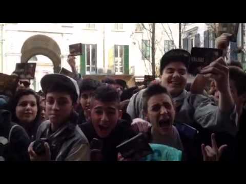 Un vero delirio per Salmo, il rapper "cattivo". Rumore, lunghe attese, urla, spintoni, risate. Tutto per il cantante del momento. Quello capace di smuovere più di mille ragazzi e farli aspettare per ore davanti ad un negozio di dischi. Quello che fa dimenticare che c’è la crisi, perché di dischi se ne vendono tanti e costano 14,99 euro (e il cofanetto 50 euro con disco, cappellino e maglietta).