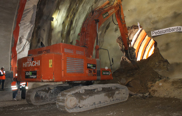 Pedemontana vede la luce in fondo al tunnel, almeno per quanto riguarda quello che è stato scavato sotto le case dei cittadini di Solbiate Olona che per quasi due anni hanno tenuto botta mentre sotto i loro piedi si scavava il traforo a doppia canna dell’autostrada Varese-Bergamo. La cerimonia dell’ultimo colpo di benna al sottile strato di roccia rimasto si è svlta questa mattina, lunedì, alla presenza del nuovo assessore regionale alle infrastrutture Maurizio Del Tenno che, per l’occasione, ha voluto anche provare il mezzo che ha dato l’ultima picconata al diaframma di terra e cemento che separava la galleria dalla valle Olona.