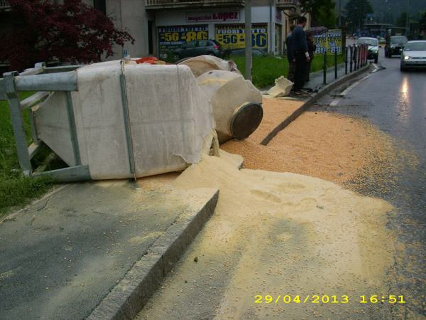 Curioso incidente a Induno Olona attorno alle 16 di oggi, lunedì, quando un autocarro cassonato ha perso il carico per strada in via Iamoretti, all’incrocio con la ss 394. Il mezzo portava un carico di cisterne piene di farina e grano quando, forse a causa della velocità un po’ troppo alta con la quale ha affrontato la curva, queste si sono completamente rovesciate per strada disperdendo il loro carico di quintali di grano e farina che hanno invaso la carreggiata bloccando la circolazione. Sul posto è intervenuta la Polizia Locale di Induno Olona che ha regolato il traffico e ha disposto la rimozione del materiale. La situazione è tornata alla normalità attorno alle 18,30.
