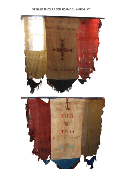 Il restauro, ne ha ricostituito la leggibilità e sanato le ferite più evidenti. La tela, composta da lana e cotone è ricamata in lana su ambo i lati con scritte patriottiche, e presenta pure dipinto, su uno dei lati il simbolo di due braccia con le mani unite. Anche lo storico vessillo, estremamente sensibile alla luce, potrà essere esposto al pubblico solo per brevi periodi. Dal 25 aprile sino al 2 giugno, feste civili significative per la Repubblica, l’antico tricolore si potrà ammirare al museo della città.