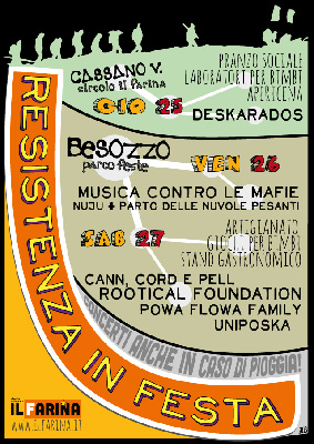 Alle 19 c’è l’Apericena Resistente, mentre la serata continua con il concerto dei Deskarados.
