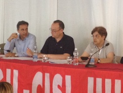 Al collegio De Filippi un incontro in preparazione della fiaccolata per il lavoro e la manifestazione del 22 giugno a cui hanno partecipato i tre segretari confederali. In prima fila i politici nazionali